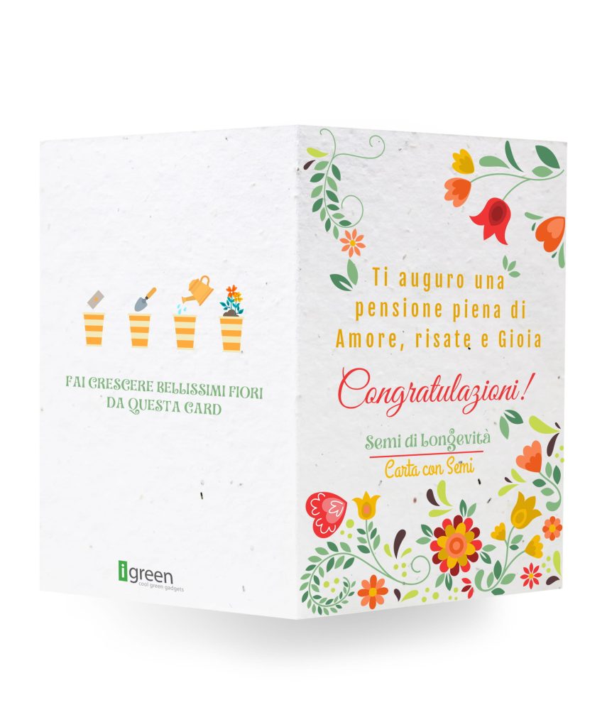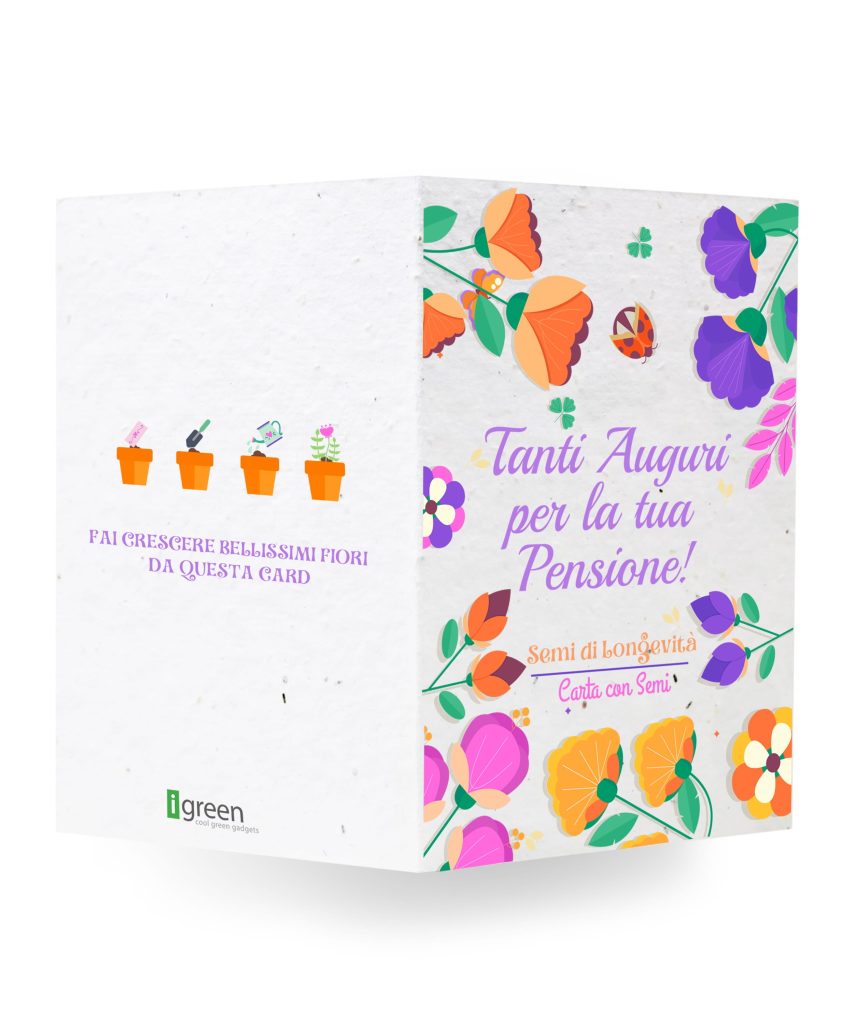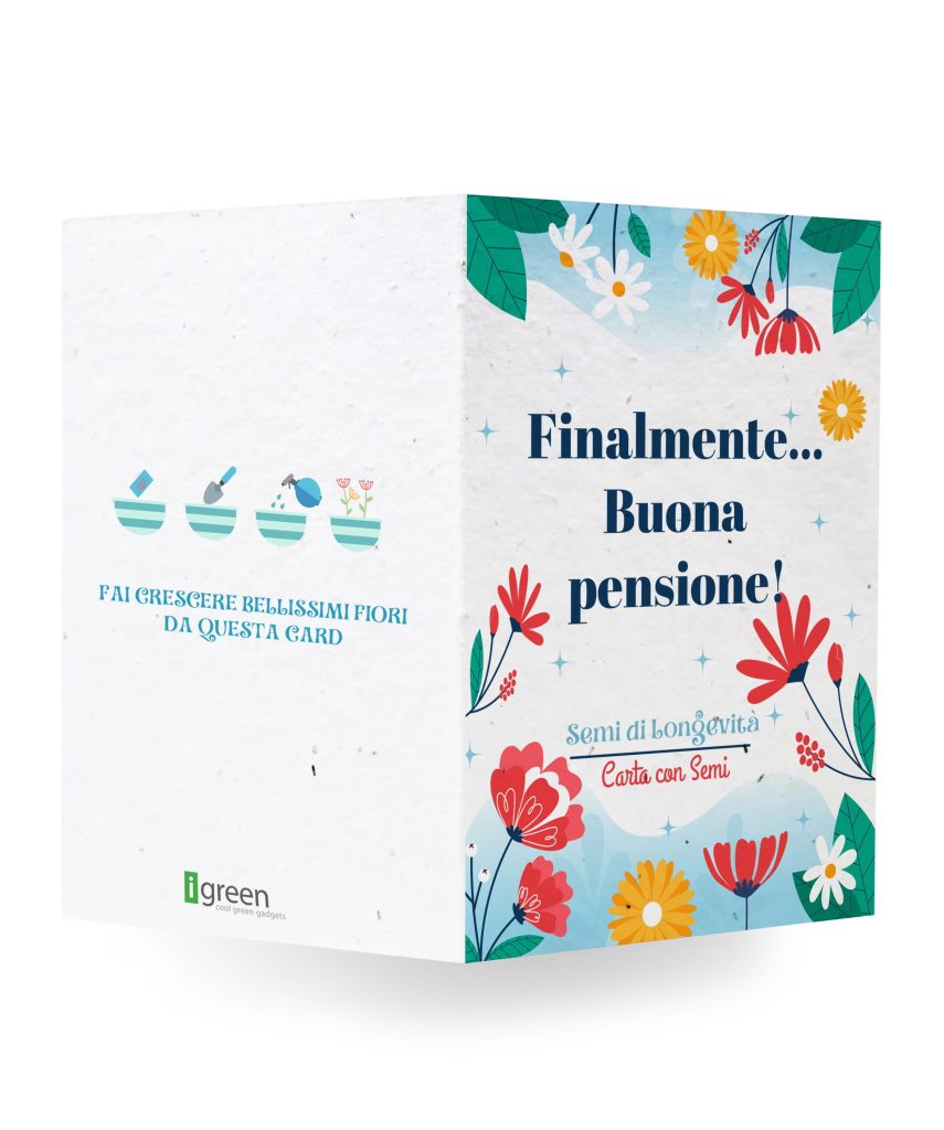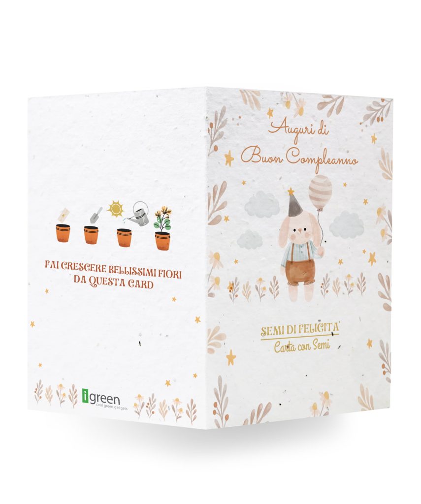 Scopri le nostre Collezioni di Biglietti che si piantano, pensate per adattarsi a ogni tipo di evento. Colorate, divertenti e originali, le nostre illustrazioni catturano subito l’attenzione e rendono i biglietti un dono che si distingue. I biglietti in carta piantabile sono disponibili in diverse varietà , pensate per coprire tutte le principali occasioni di festa. Ogni collezione è dedicata a un tema specifico: Compleanno, Pensione, Battesimo, Natale e molte altre occasioni. In questo modo, potrai trovare sempre il biglietto perfetto per trasmettere il tuo messaggio di auguri, scegliendo tra diverse opzioni, tutte caratterizzate da un design elegante e un tocco di originalità .
