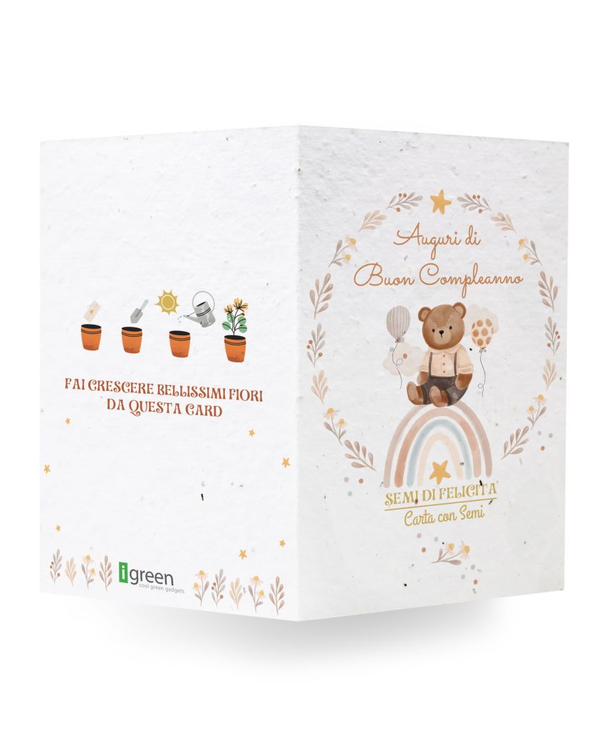 Gli Auguri Piantabili rappresentano una soluzione creativa ed eco-friendly per festeggiare momenti speciali. Realizzati in carta piantabile, questi biglietti contengono semi di fiori di campo che, una volta piantati, daranno vita a splendidi fiori. Perfetti per chi cerca un’alternativa sostenibile ai tradizionali biglietti di auguri, questi Biglietti Auguri Piantabili sono ideali per ogni occasione, dal compleanno al matrimonio, dalla celebrazione di una nascita ai Biglietti di Natale. Con questi biglietti, il tuo messaggio non sarà soltanto un gesto simbolico, ma diventerà qualcosa di vivo, in grado di crescere e fiorire nel tempo. Scegliere gli auguri piantabili significa fare un regalo che non solo emoziona, ma contribuisce anche a un impatto positivo sull’ambiente.