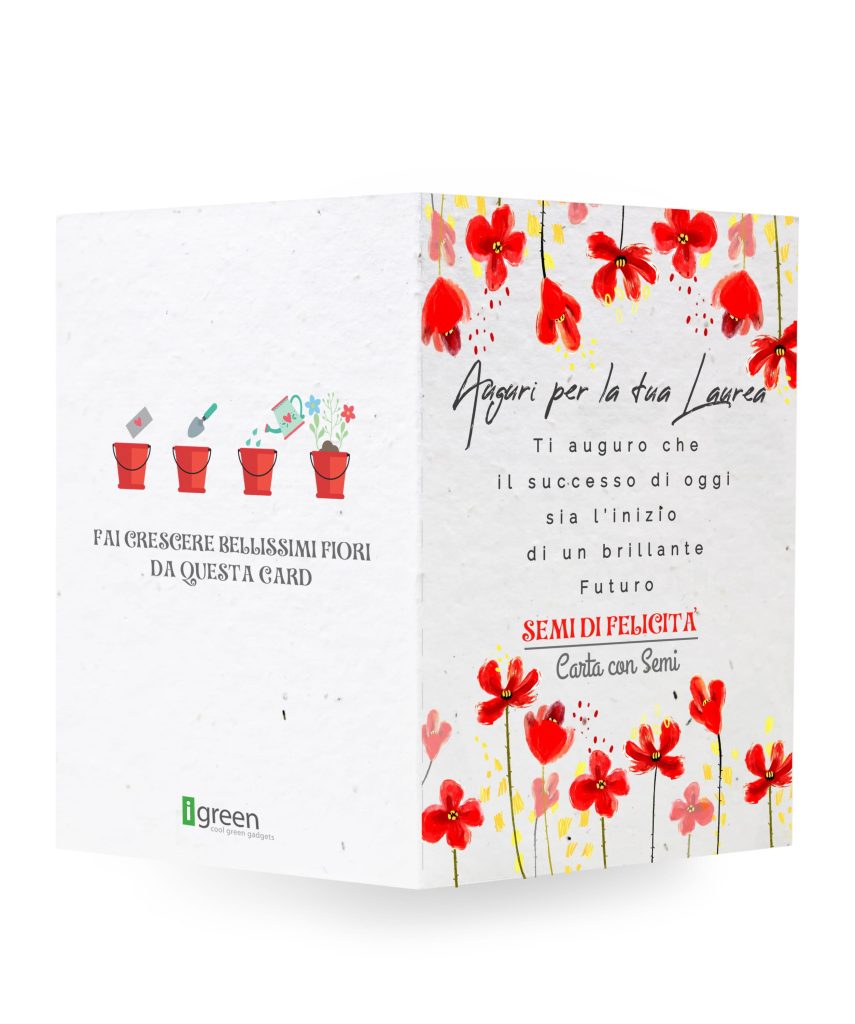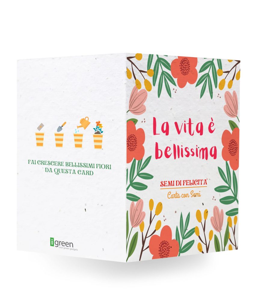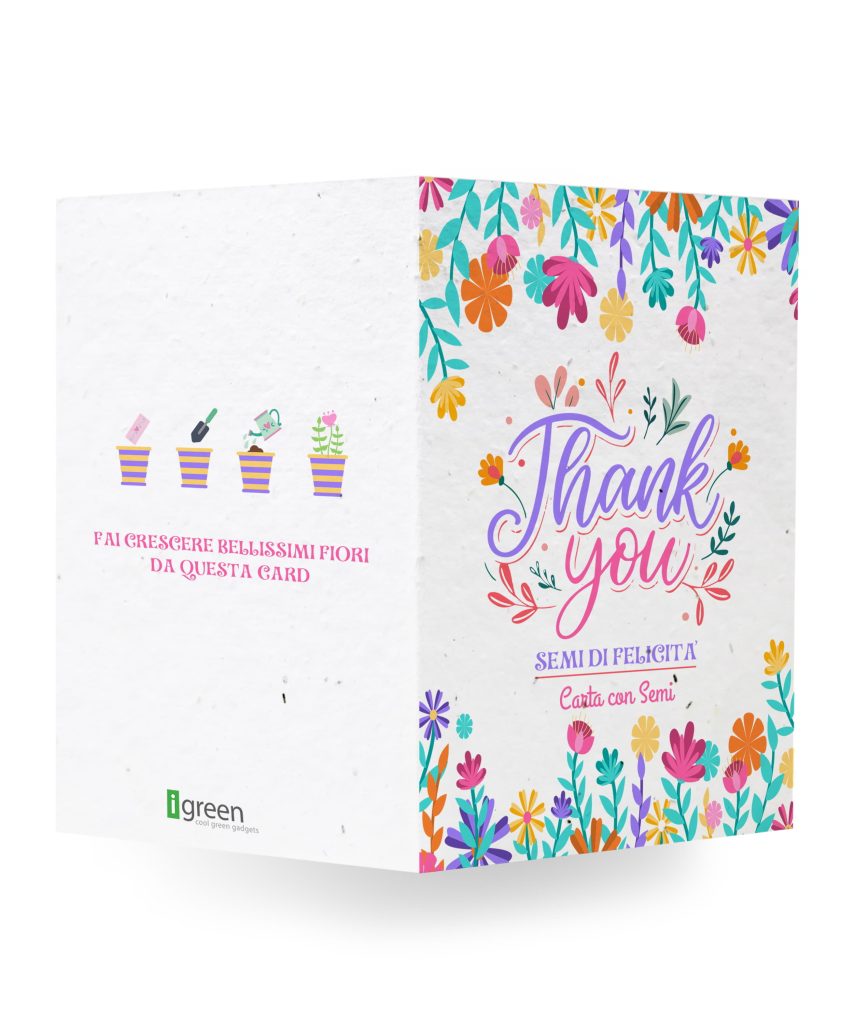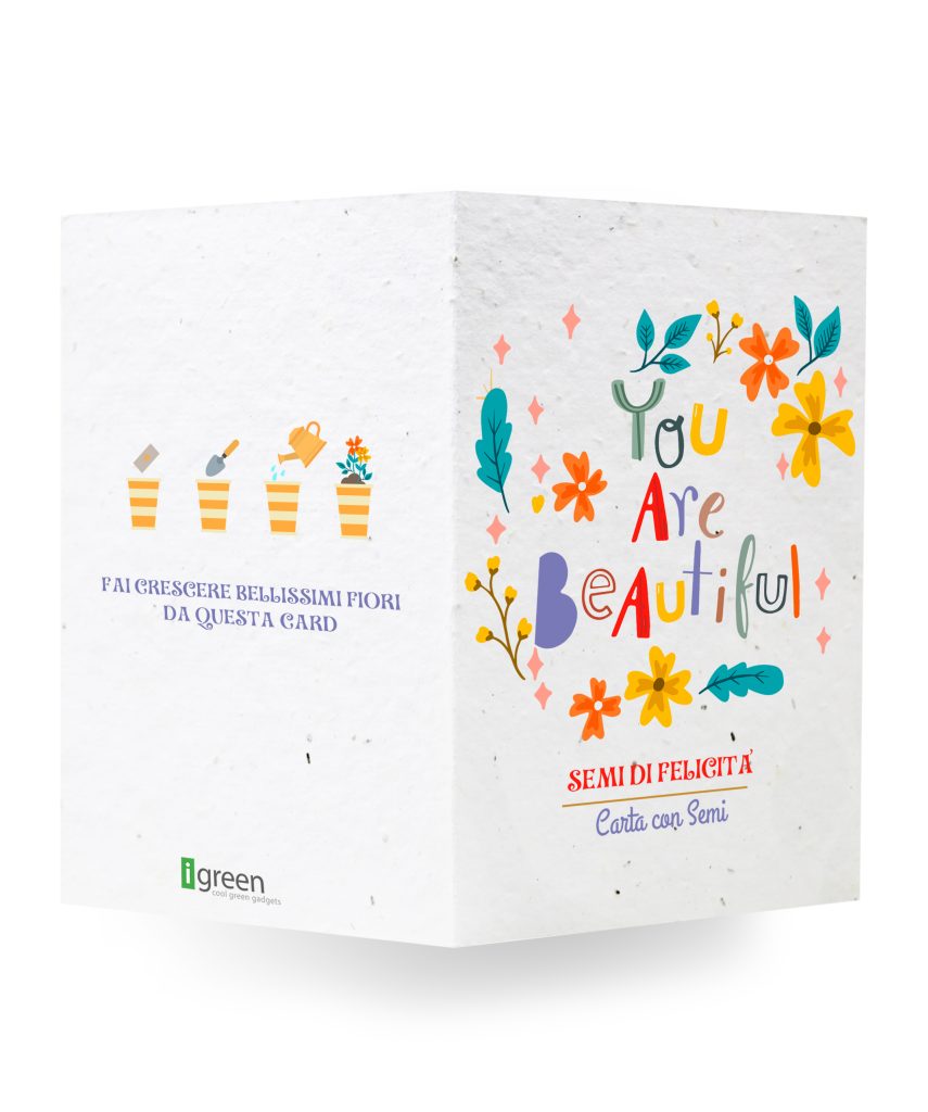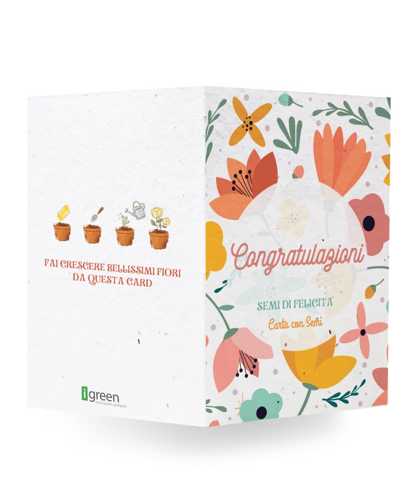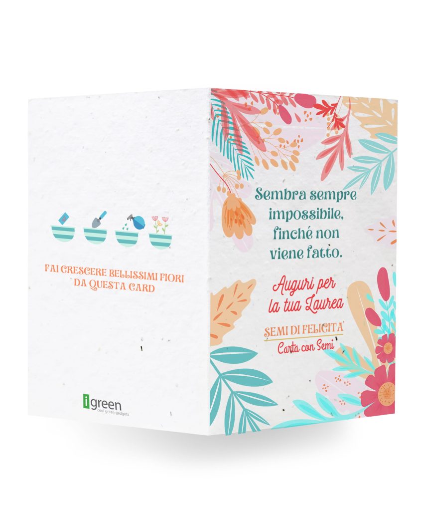 Oltre alla creatività , questi Biglietti di Auguri Piantabili sono unici per la qualità unica della carta con semi. La carta utilizzata è di una texture premium, resistente e piacevole al tatto per garantire un prodotto completamente sostenibile. Dopo aver letto il messaggio, invece di gettarlo via, basterà piantare il biglietto in un vaso con terriccio e annaffiarlo regolarmente. In poche settimane, i semi contenuti nella carta inizieranno a germogliare, trasformandosi in un piccolo giardino di fiori di campo. Un gesto semplice, ma carico di significato, che unisce natura e affetto in un unico prodotto. Ogni augurio si trasforma così in un’esperienza che continua a crescere anche dopo la fine della festa.