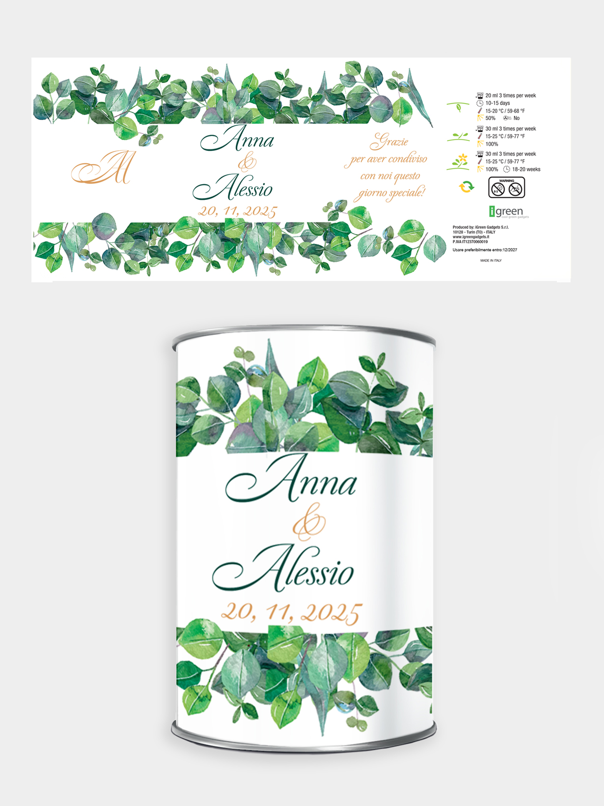 Le nostre Bomboniere Microgiardini Fiori in Lattina, sono personalizzabili con qualsiasi immagine e testo. Anche il colore di sfondo è personalizzabile. E la personalizzazione avviene su tutta la superficie della lattina.