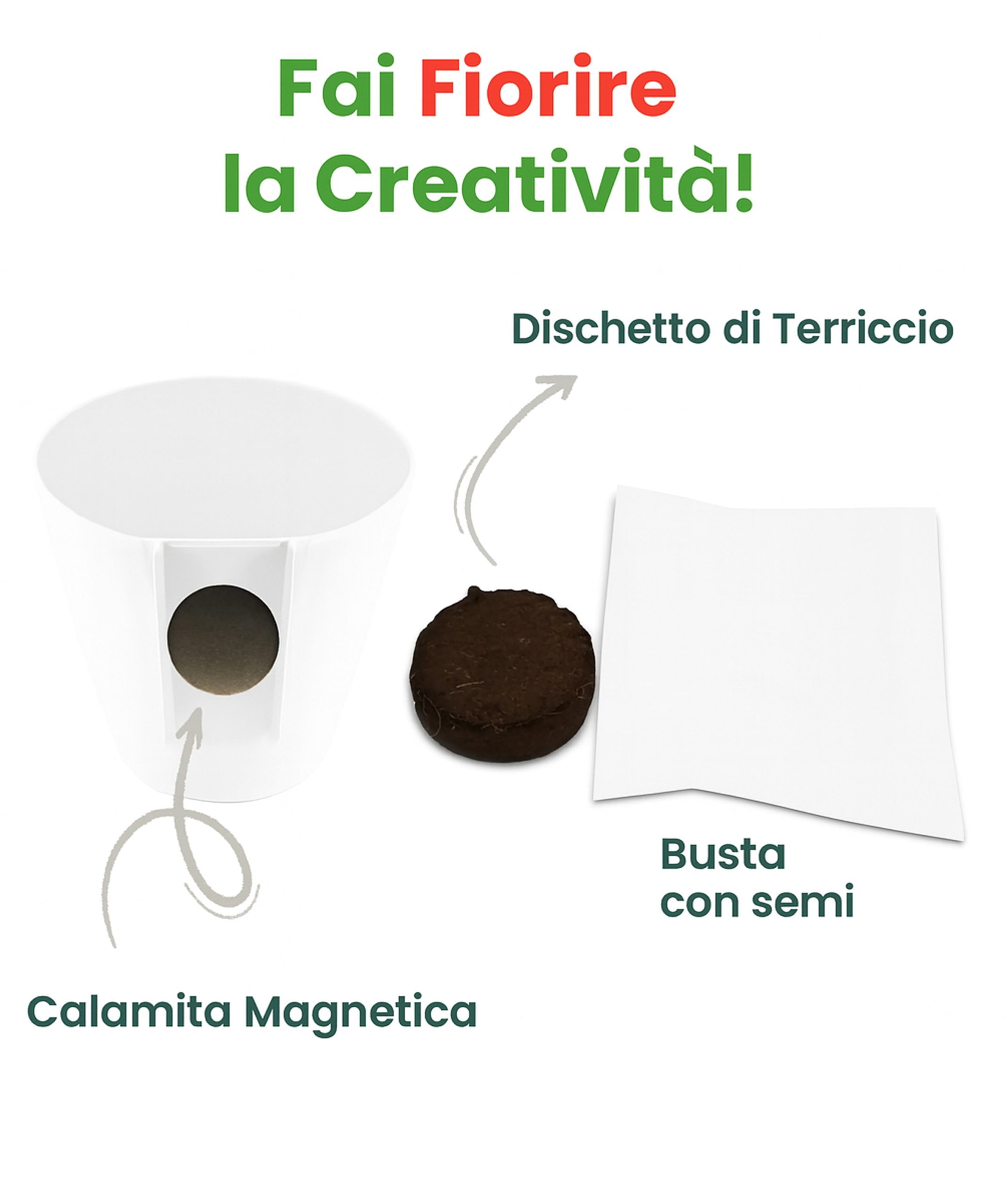 Dentro ogni calamita per frigo ecosostenibile si nasconde la promessa di un raccolto genuino. Puoi scegliere tra tre varietà di semi: basilico, prezzemolo ed erba cipollina, ideali per arricchire ogni ricetta con il profumo delle erbe appena colte. La coltivazione è semplice e intuitiva: basta un po’ d’acqua, luce naturale e la pazienza di attendere la crescita delle prime foglioline. Il risultato è un tocco di freschezza sempre a disposizione, senza sprechi e senza imballaggi superflui.