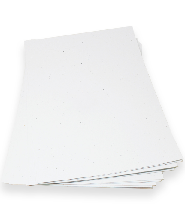 La nostra carta piantabile è davvero unica: non solo si pianta e germoglia, ma vanta una texture esclusiva, diversa da qualsiasi altra carta ecologica presente sul mercato. Grazie alla produzione artigianale, ogni foglio ha una grammatura variabile tra 250 e 300 gr, conferendo un aspetto e una consistenza unica, impossibile da trovare in qualsiasi altra carta piantabile sul mercato.