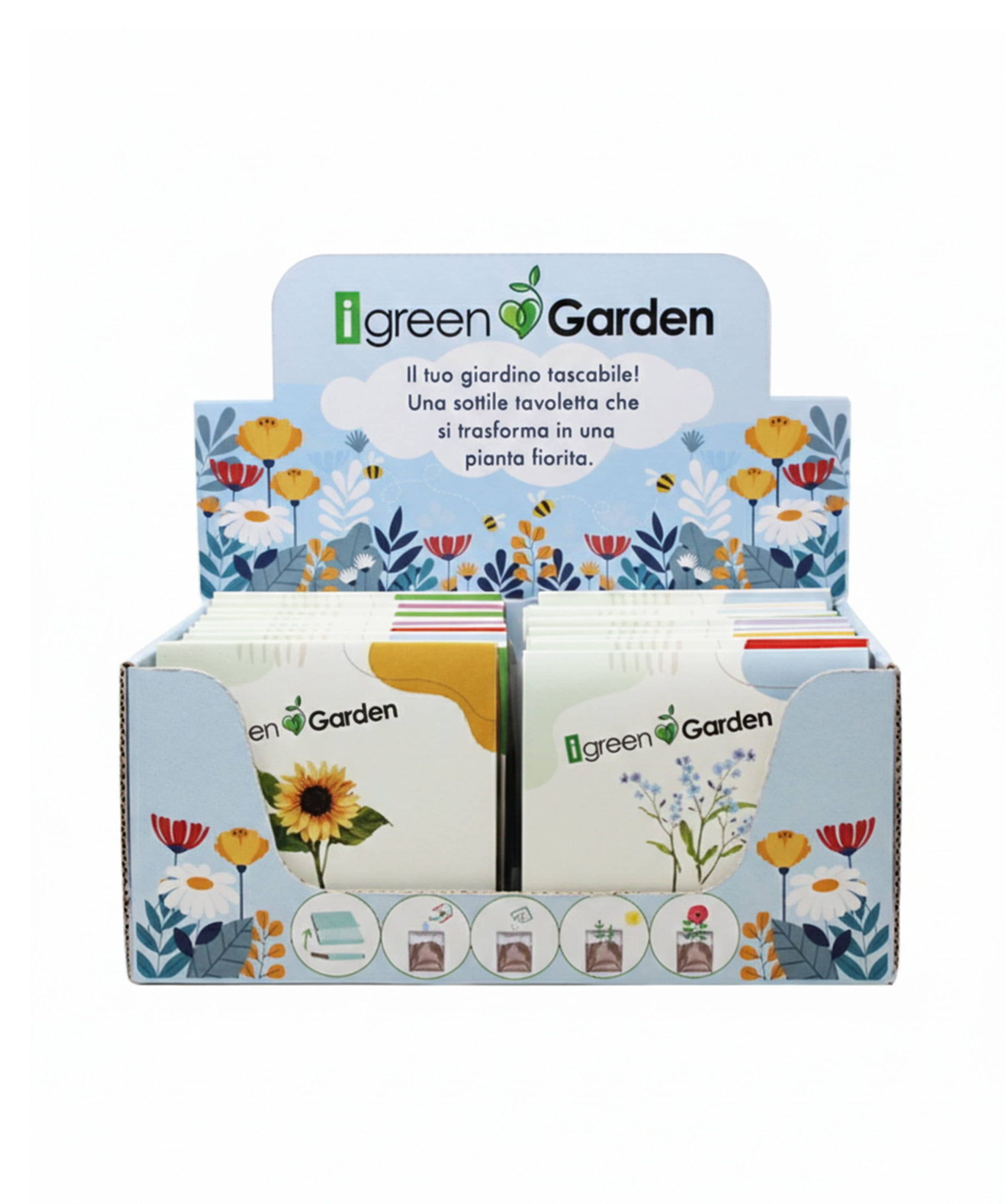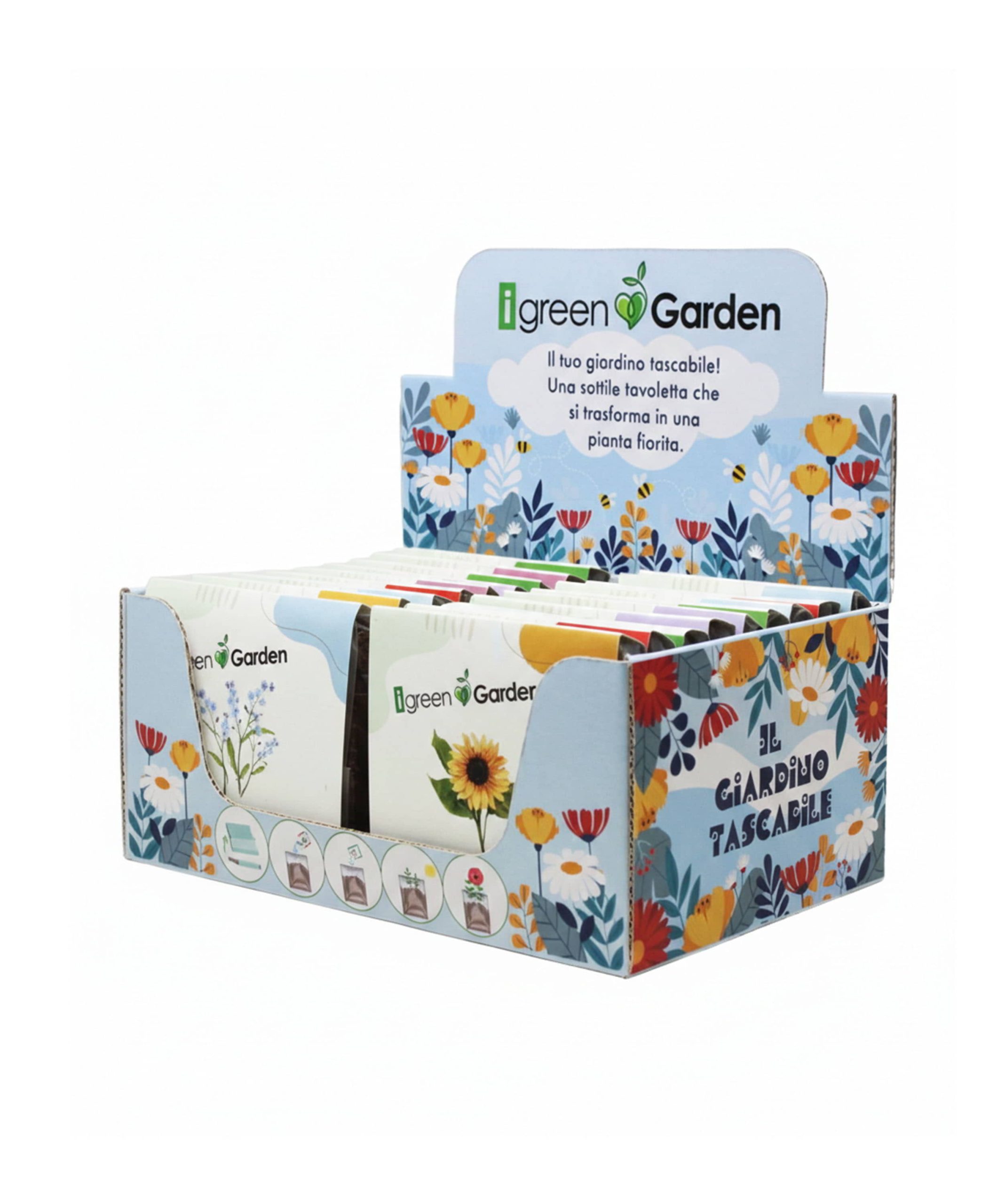 Con la Soluzione Display da Banco avrai a disposizione 18 Instant Garden con semi assortiti, per proporre ai tuoi clienti un gadget green, divertente e semplice da coltivare!