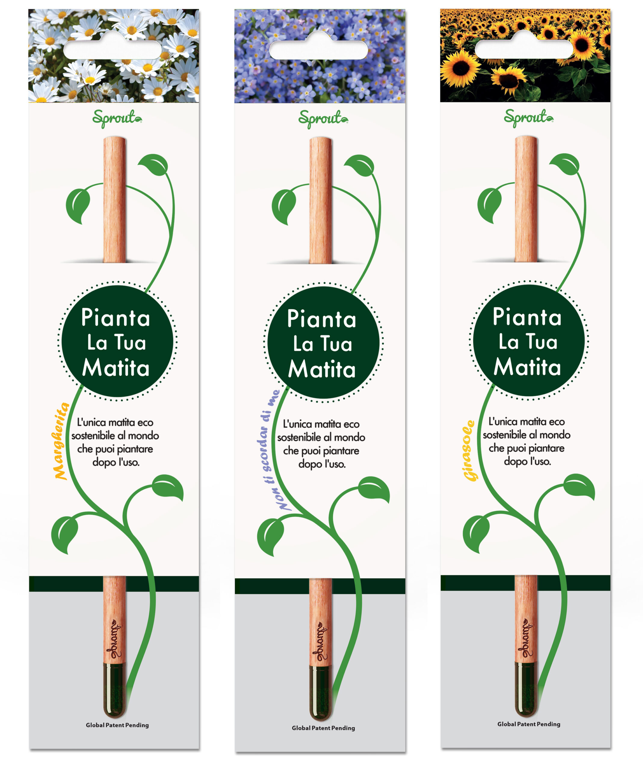 Matita Sprout è una vera e propria matita che monta una mina HB2, cioè la più diffusa sul mercato e più di uso comune. A differenza delle altre matite, però, da lei può nascere una piantina. Infatti, su una delle sue estremità, è stata inserita una capsula biodegradabile che contiene al suo interno i semi di diversi fiori colorati o piante aromatiche. Una volta terminato di utilizzarla, quindi, basterà inserire la matita nel terriccio, esporla alla luce naturale e annaffiarla con regolarità per veder spuntare, nell’arco di due o tre settimane, i primi germogli.