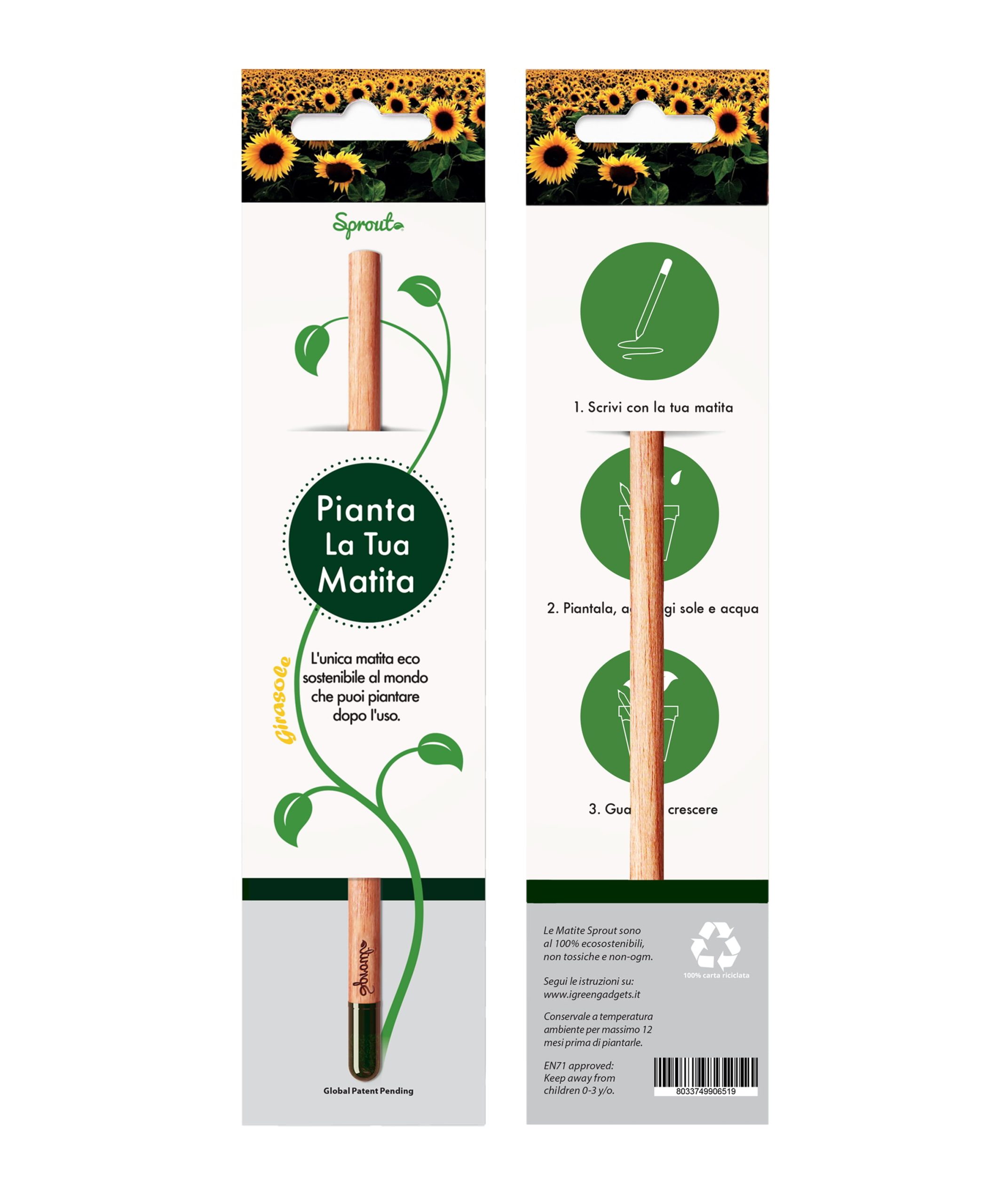 Le Matite Sprout simboleggiano l’attenzione all’ambiente e l’amore per la natura: ovunque, si può far crescere un fiore o una piantina. Sono biodegradabili e non contengono materiali tossici: la mina è in grafite e argilla e l’esterno in legno.