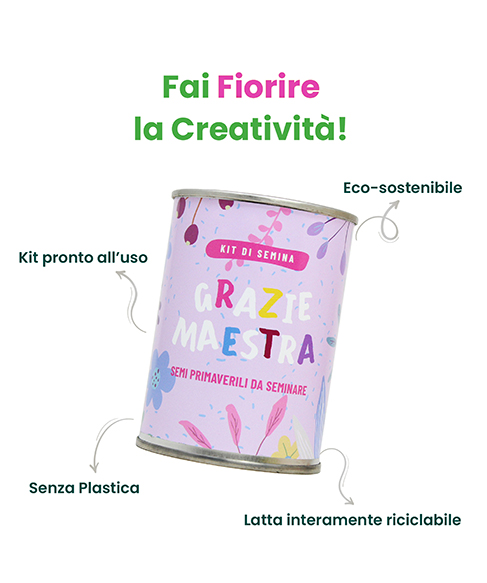 I Fiori in Lattina Augurali trasformano ogni evento in un momento speciale. Che si tratti di celebrare un compleanno, augurare un buon pensionamento o ringraziare una persona cara, questi originali Microgiardini sono il regalo ideale. All’interno di ogni lattina troverai tutto il necessario per coltivare piccoli fiori di campo colorati, simbolo di crescita e gratitudine. Il loro design, personalizzato per adattarsi a diverse occasioni, li rende perfetti per sorprendere chiunque con un pensiero ecologico e creativo. I Microgiardini Augurali non sono solo oggetti, ma un’esperienza che continua a crescere nel tempo, proprio come i legami e i ricordi che rappresenta.